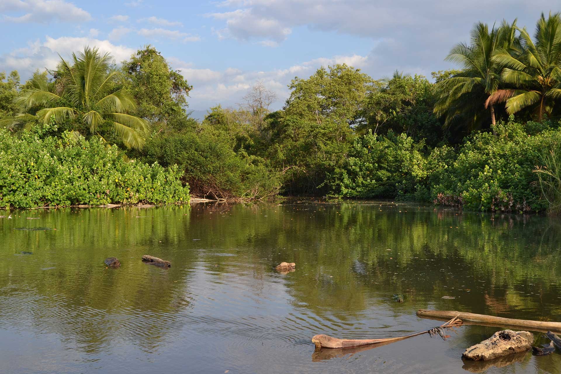 Il villaggio di Tortuguero sorge su una lingua di sabbia; volendo spiegarla in termini di dinamica delle coste si tratta di una barra emersa di sabbia tra la laguna e l’oceano.